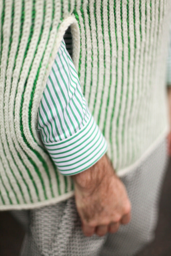 Finished Measurements: 20” / 51cm neck circumference, 56” / 142cm body circumference. Body circumference and length are customizable. Measurements taken unblocked. Shown on a 42” / 107cm chest circumference and 50” / 127cm yoke circumference with 6” / 15cm of positive ease.
