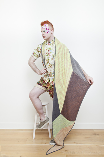 Errata: Section 3 - Row 1 (RS) stitch count is 6 sts, and Row 3 (RS) stitch count is 8 sts. Section 4 - Using D and with RS facing, pick up and k61 (89) sts along right edge of SECTION 1 selvedge.